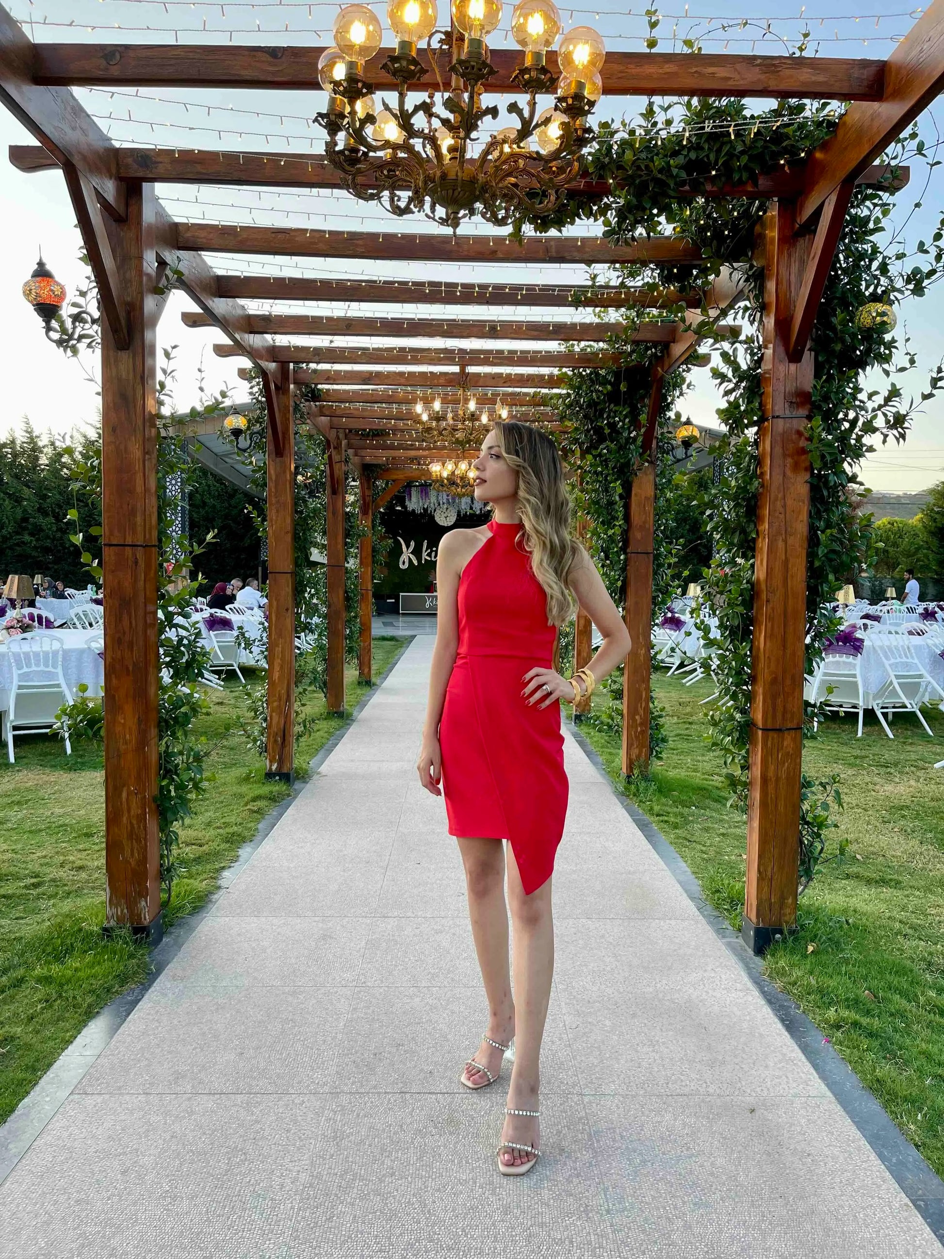 Red Fitted Lined Woven Evening Dress